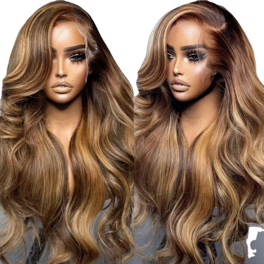 วิกผมสังเคราะห์แบบลอนสีเปียโน ขายดี วิกผมยาวหยิกแบบ Body Wave วิกผมหน้าผากลูกไม้