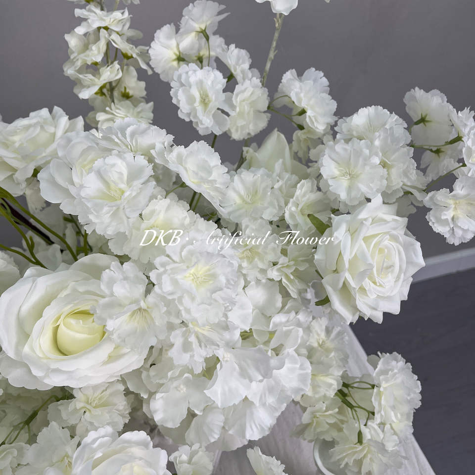 ธงประดับงานแต่งงานดอกไม้ประดิษฐ์สีขาวล้วนสำหรับตกแต่งโต๊ะงานแต่ง