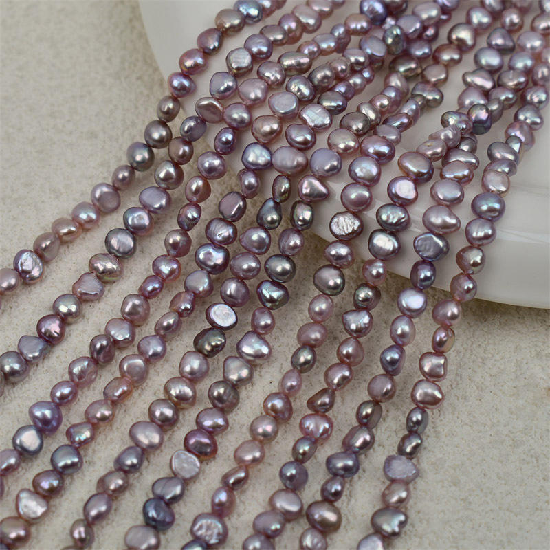 ไข่มุกน้ำจืดแท้สีม่วงระยิบระยับแบบบาโรกสองด้าน 4-5 เม็ด ของเวนชี ประเทศจีน ขายดี