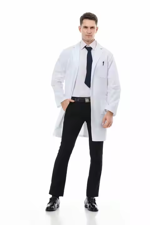 เสื้อโค้ทแลปสีขาวสำหรับผู้ชายผู้หญิงชุดยูนิฟอร์มเคมีสำหรับนักเรียนร้านขายยาชุดเครื่องแบบแพทย์โรงพยาบาล