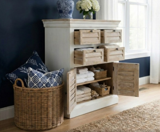 ตู้เก็บของห้องนั่งเล่นไม้จริงสีขาวธรรมชาติ ขายดี ประหยัดพื้นที่ เป็นมิตรกับสิ่งแวดล้อม 4 ลิ้นชัก 2 บาน สวยงาม ทันสมัย สำหรับบ้าน