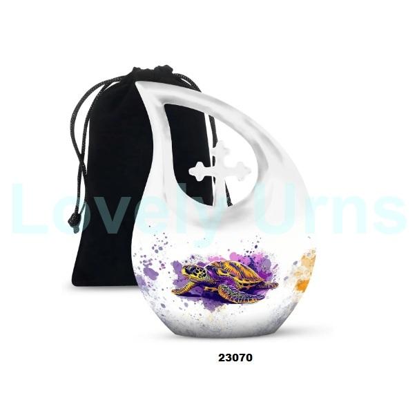 โกศสำหรับผู้ใหญ่สำหรับขี้เถ้ามนุษย์พร้อมถุงกำมะหยี่รูปเต่าสีขาว