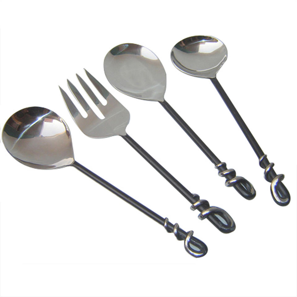 ร้อนขายขายส่ง Flatware ช้อนส้อมมีดสแตนเลสสีดําชุดช้อนส้อมสําหรับงานปาร์ตี้