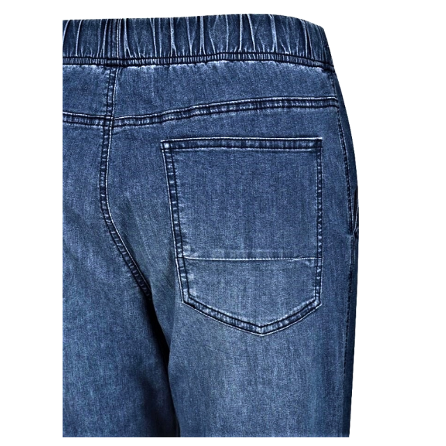 กางเกงวิ่งผ้ายีนส์ของผู้ชายกางเกงลำลองเอวยางยืดและกระเป๋าหลายกระเป๋าโลโก้แบบปรับแต่งได้