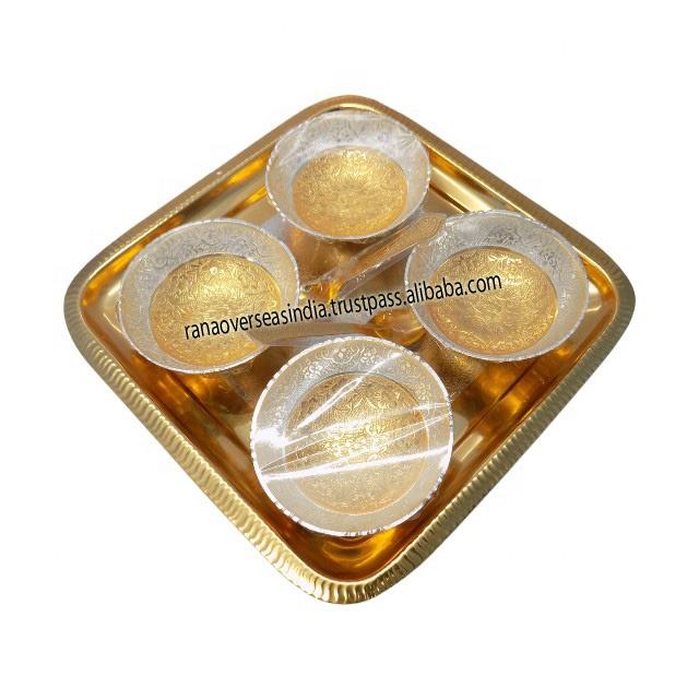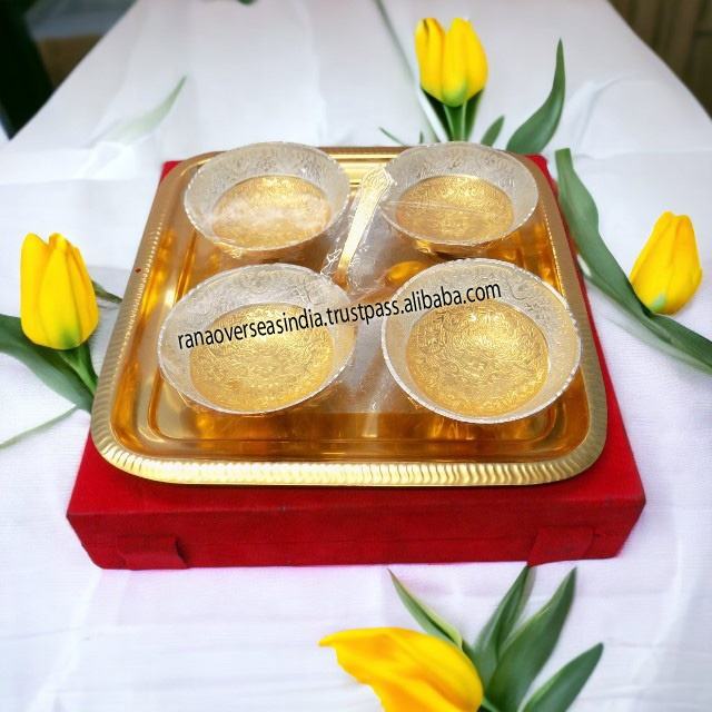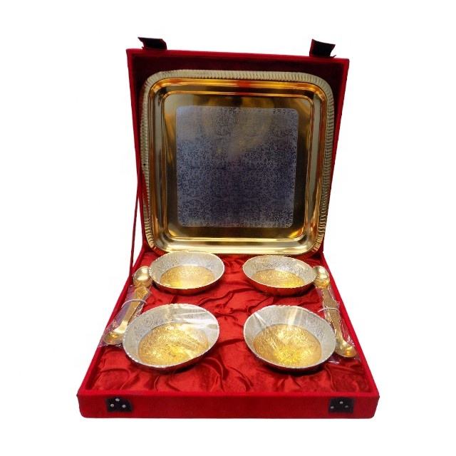 ชุดชามโลหะชุบเงินและทอง9ชิ้นเหมาะสำหรับเทศกาลดิวาลีคริสต์มาสของขวัญคืนงานแต่งงาน