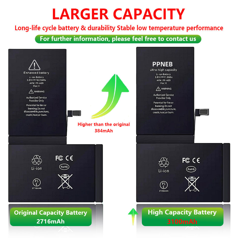 ชื่อผลิตภัณฑ์:แบตเตอรี่โทรศัพท์มือถือสำหรับ iPhone x แบตเตอรี่ความจุสูง