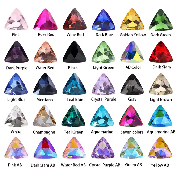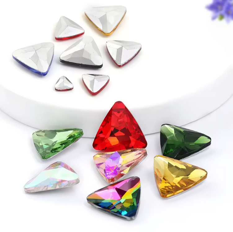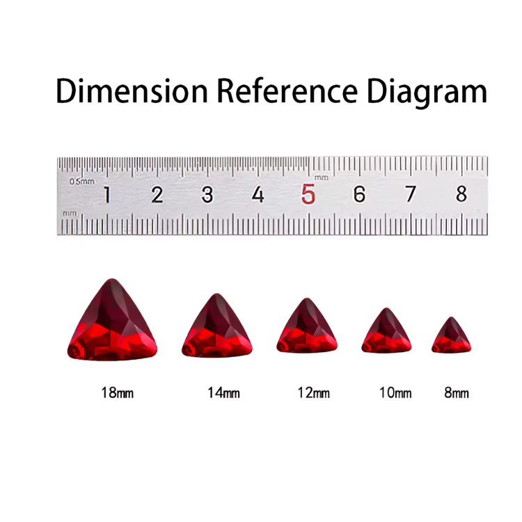 คริสตัลแก้วอะคริลิคสีแดงด้านหลังแบนทรงสามเหลี่ยมพลอยเทียม