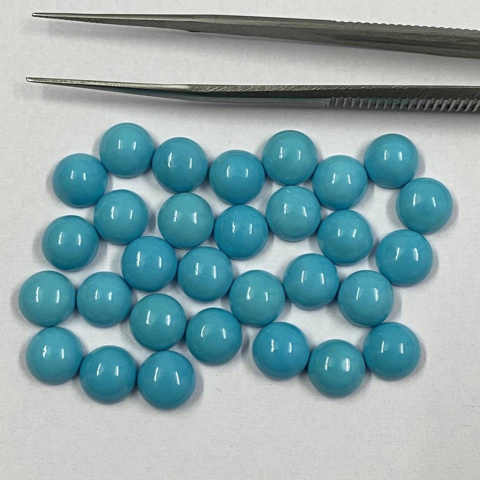 Cabochon ทรงกลมเรียบสีฟ้าแอริโซนา8มม.,สำหรับทำเครื่องประดับ