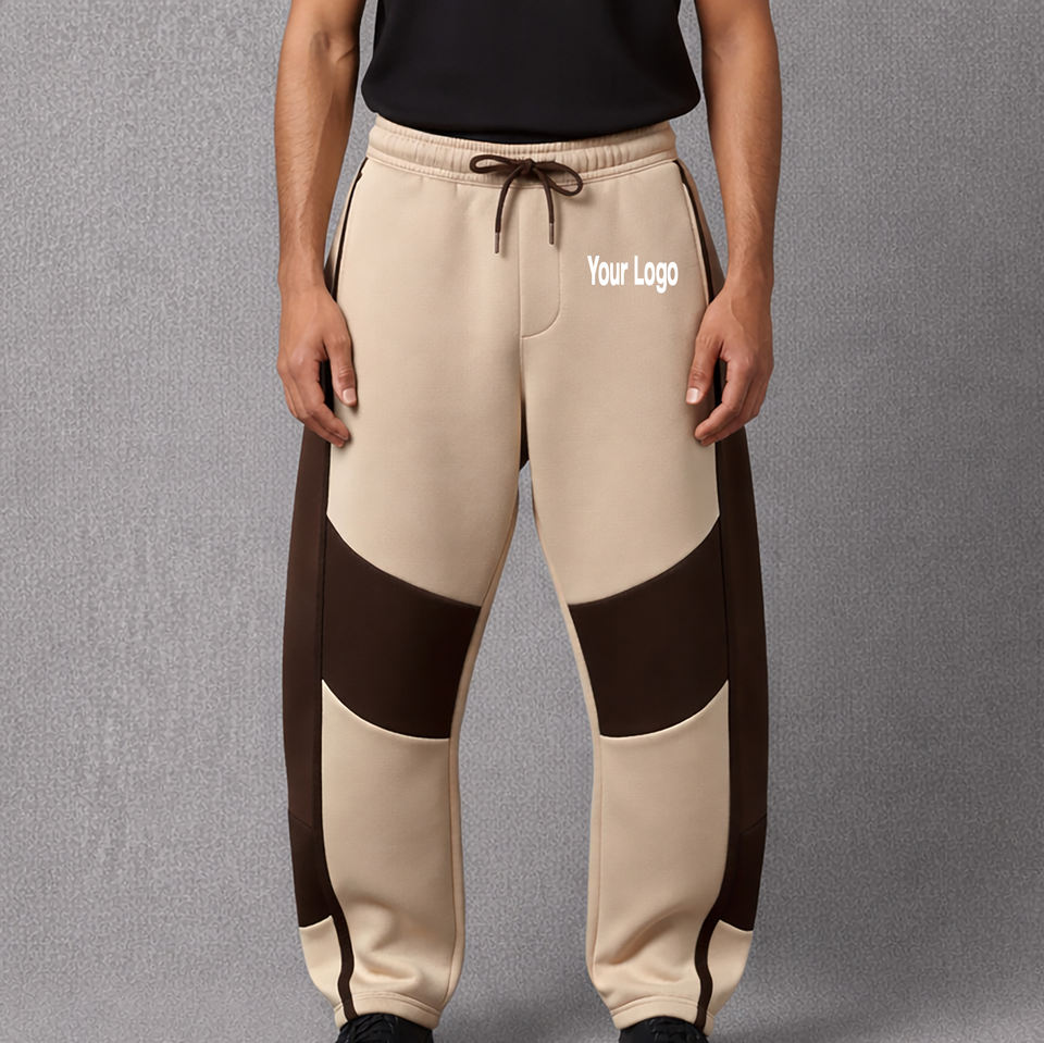 กางเกงขายาวทรงตรงผ้าฝ้าย 100% หนานุ่ม สีสันตัดต่อ ขอบขาจั๊มพ์ ทรงขากว้าง กำลังขายดี