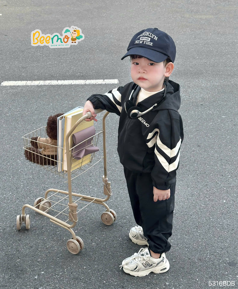 ชุดเสื้อผ้าเด็กผู้ชายสไตล์สปอร์ตสำหรับฤดูหนาว ขายดี สำหรับเด็กอายุ 1-7 ปี เสื้อฮู้ดกันลมและกางเกงขายาว ชุดเด็กวัยหัดเดิน