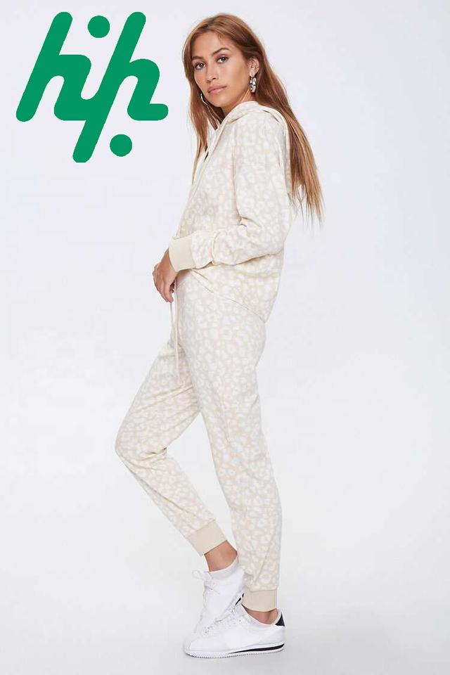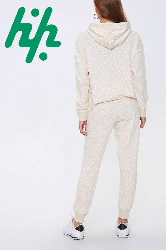Hot Selling Women Leopard Hoodie Joggers Set Full Sleeve Winter Tracksuit Sports Wear Four-Way Stretch Breathable Huzaifa