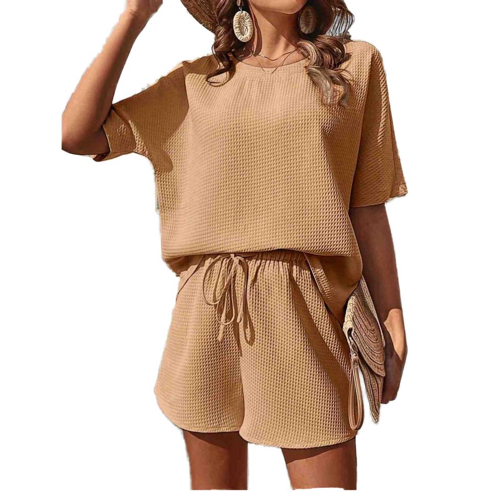 ชุดเสื้อผ้า2ชิ้นสำหรับผู้หญิงชุดเสื้อแบทเชิ๊ตแขนสั้นและกางเกงขาสั้นปักคอโบว์ชุดฤดูใบไม้ผลิออกแบบได้ตามต้องการ