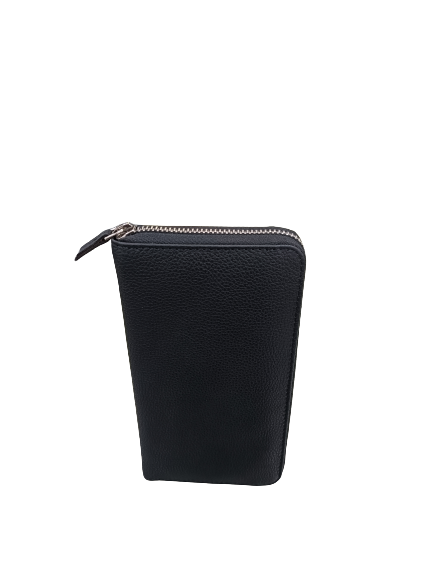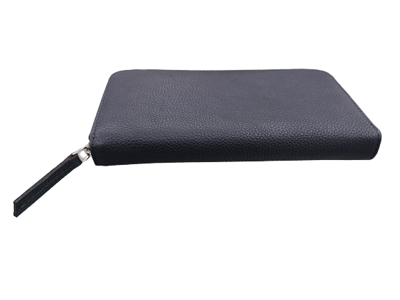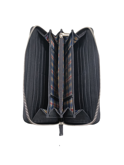 กระเป๋าสตางค์หนังแท้สีดำแบบพับสองชั้นสำหรับผู้หญิงทรงยาวแบบปักลายลูกอมสไตล์โบฮีเมียน
