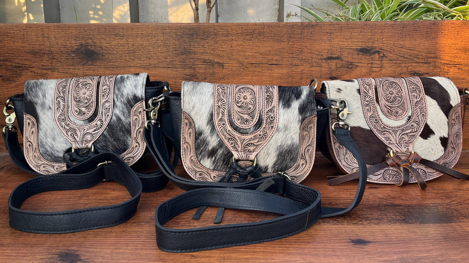กระเป๋าหนังมีพู่แบบมือ