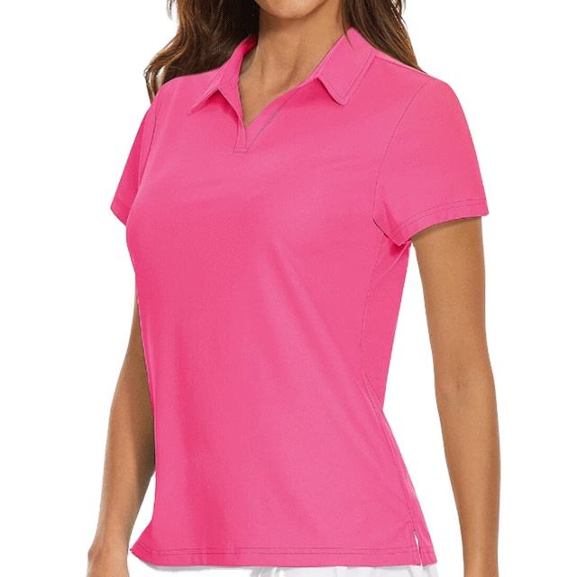 เสื้อผ้าผู้หญิงลำลองผ้าแคนวาสสีพื้นขายดี ออกแบบตามสั่ง ราคาดีที่สุด เสื้อกอล์ฟสีชมพูสำหรับใส่หน้าร้อน