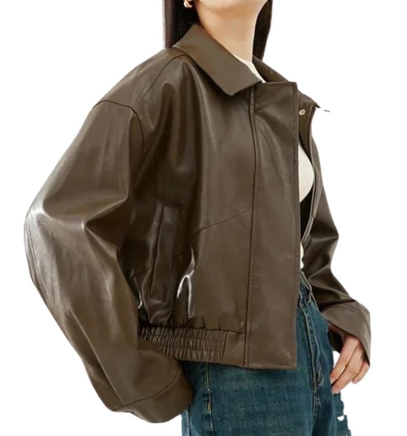 แจ็คเก็ตหนังแท้ผู้หญิงขายดี สไตล์ Y2K กันน้ำ ใส่สบาย รับผลิตตามแบบ OEM แจ็คเก็ตหนังแท้ผู้หญิง 2026