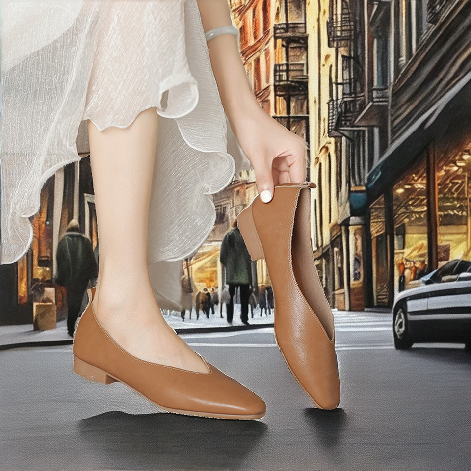 Hot Selling Women's PU Flat Pumps Pointed Toe Ballet Flats with Light Leather Lining Slip-On Closure for Summer Spring Autumn