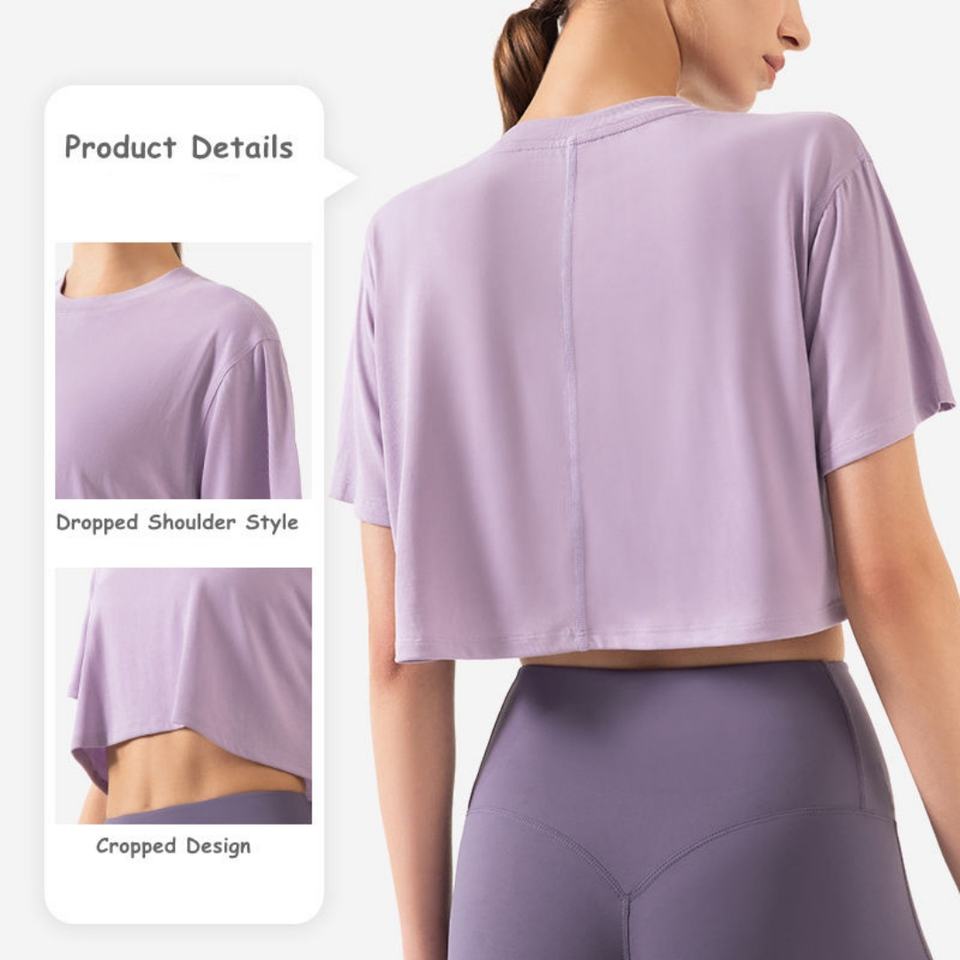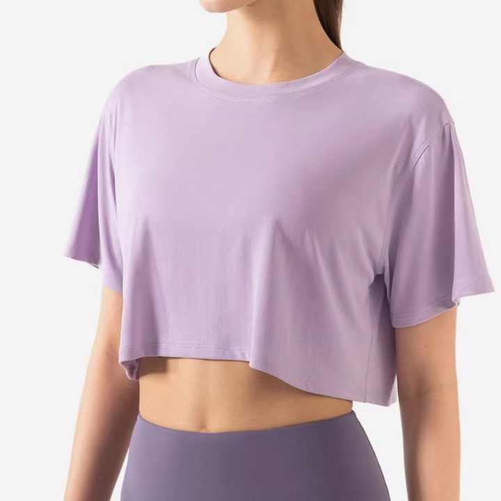 เสื้อยืดครอปแขนสั้นสำหรับออกกำลังกายฤดูร้อนสไตล์สปอร์ตสำหรับผู้หญิง ขายดี เหมาะสำหรับโยคะ วิ่ง และเล่นกีฬาทั่วไป