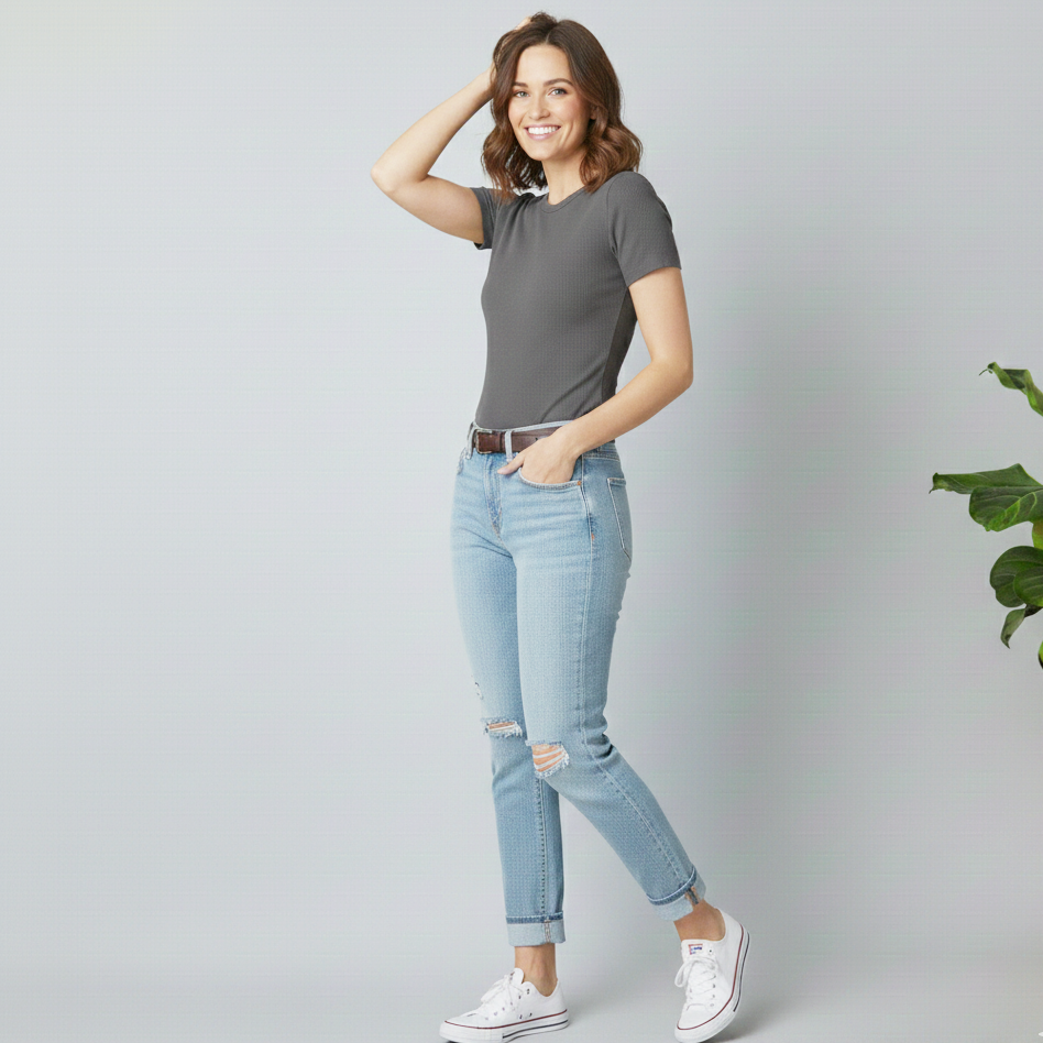 เสื้อยืดผู้หญิงขายดี ผลิตจากผ้าฝ้าย สแปนเด็กซ์ และอีลาสเทน คุณภาพเยี่ยม เสื้อผ้าผู้หญิงราคาส่ง