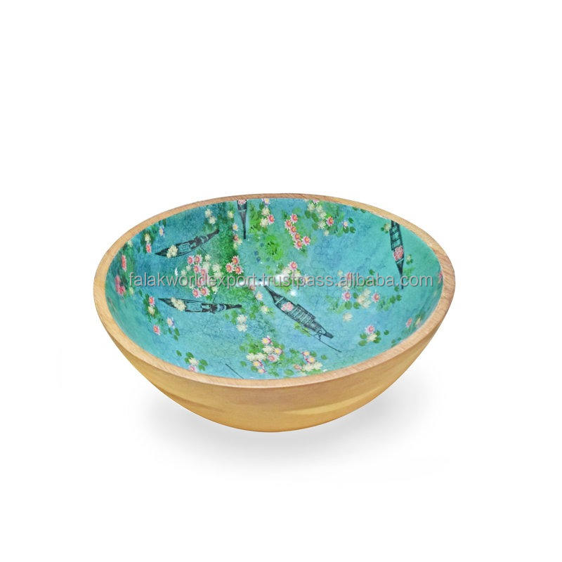 ชามไม้เคลือบลายดอกไม้ งานแฮนด์เมด ใช้ซ้ำได้ สำหรับเสิร์ฟอาหารเย็น สลัด และของหวาน น้ำหนักเบา ขายดีที่สุด