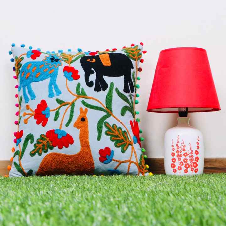ปลอกหมอนอิงผ้าฝ้ายลายตารางสี่เหลี่ยมหรูหราลายดอกไม้ทอจากอินเดียใช้ในบ้านนวดแบบถอดออกได้มีซิปด้านหลัง