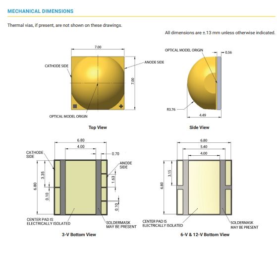 XHP70.2แยกไฟ LED เทอร์โมอิเล็กทริกเย็นสีขาวกำลังสูง7มม. x 7มม. 6V 12V ธรรมชาติ3535
