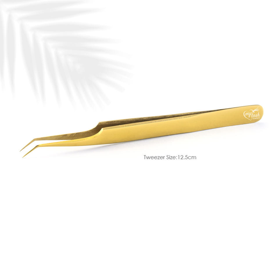 Color:Customer's Choice 90 degree eyelash tweezers gold color