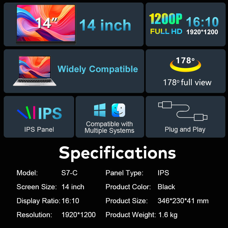 ขายดีในเมอร์คาโด จอภาพพกพาคู่ขนาด 14 นิ้ว ความละเอียด 1920*1080P ราคาสุดคุ้ม พร้อมหน้าจอคู่