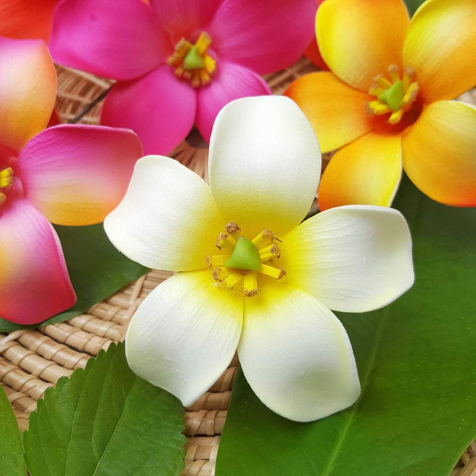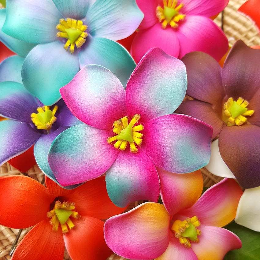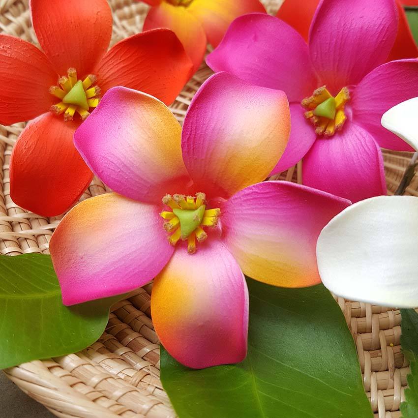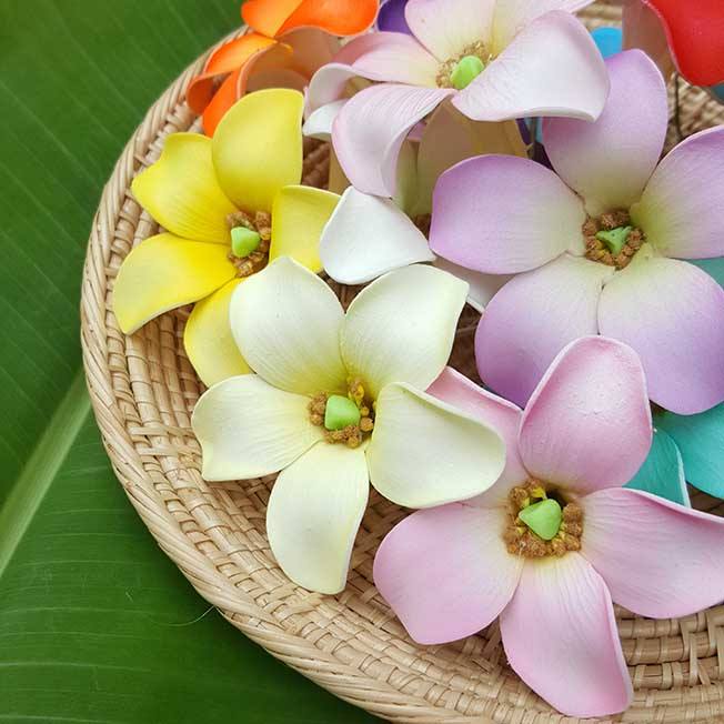 ขายดีตลอดเวลาอุปกรณ์เสริมแฟชั่นที่ทำด้วยมือ EVA โฟม Tiare ดอกไม้ตาฮิติที่มีรูปแบบการพิมพ์รอยสักพิเศษ/ไม่ซ้ำกัน