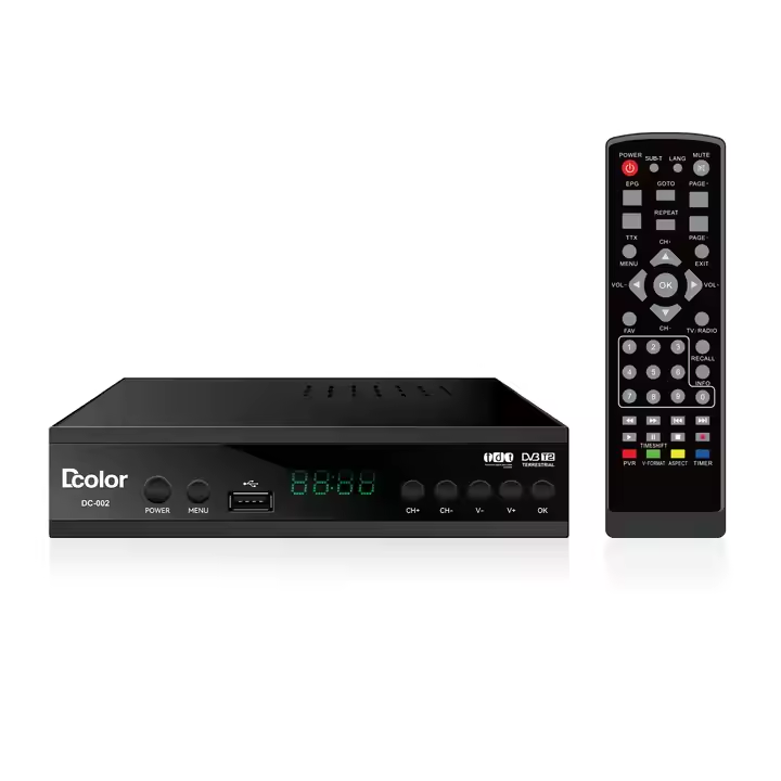 Hot Selling signal Decoder Digital Free to Air Channels Support Multi Languages HD1080P Dcolor H264 Dvb-t2 Set Top Box