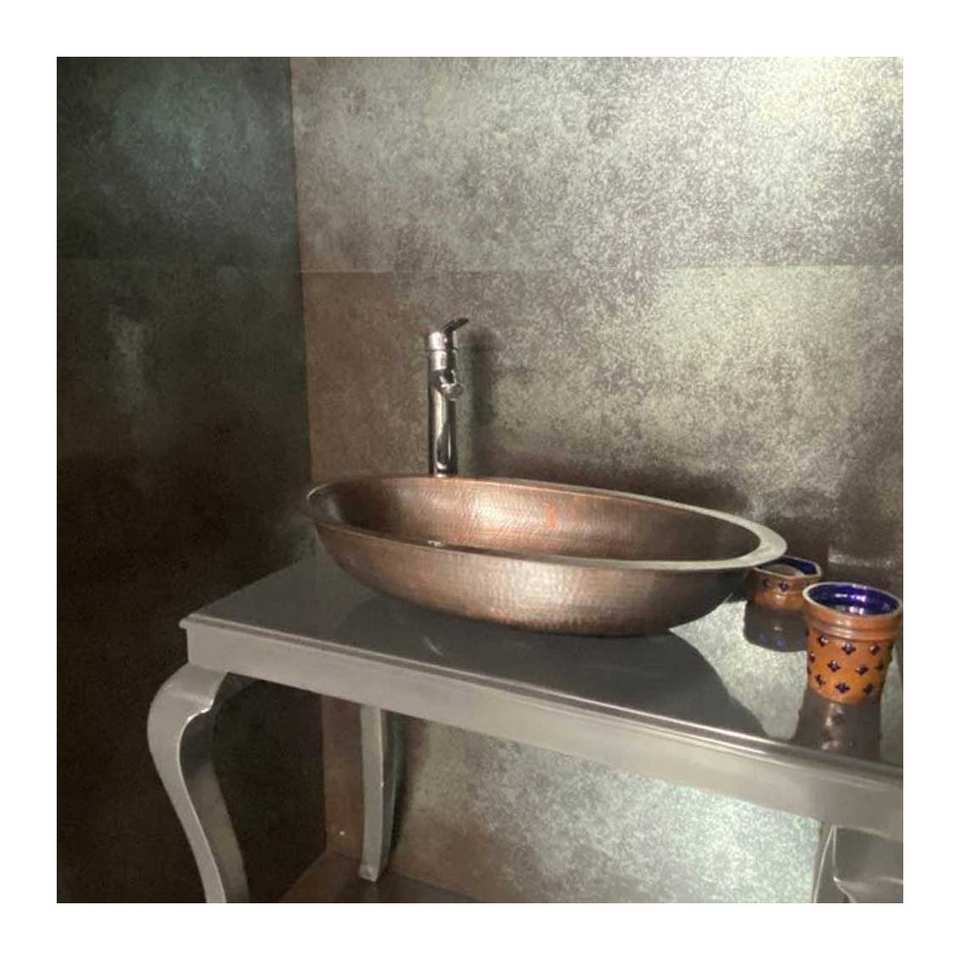อ่างล้างจานทองแดงแบบเดี่ยวทรงรีซิงค์ทองแดงโบราณ
