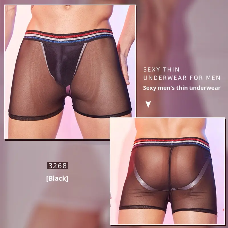 กางเกงบ็อกเซอร์ผู้ชายเอวต่ำระบายอากาศได้ดีสุดเซ็กซี่กางเกงบ็อกเซอร์มีกระเป๋ารูปตัวยูชุดชั้นในเซ็กซี่สุดเซ็กซี่