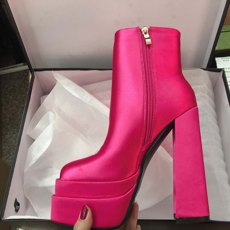 รองเท้าบูทผู้หญิงวัสดุผ้าไหมเนื้อนุ่ม สีสั่งทำได้ ซิปด้านข้าง พื้นหนา รองเท้าบูทแพลตฟอร์มหรูหรา