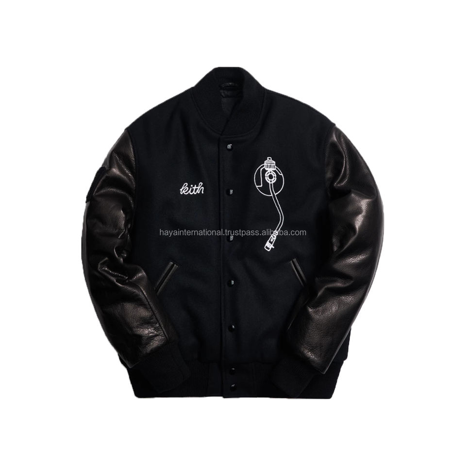 ร้อน Sleeling บริสุทธิ์สีดำ HIVJ54 100% ขนสัตว์ร่างกายและหนังแขนปักตัวแทนแจ็คเก็ต