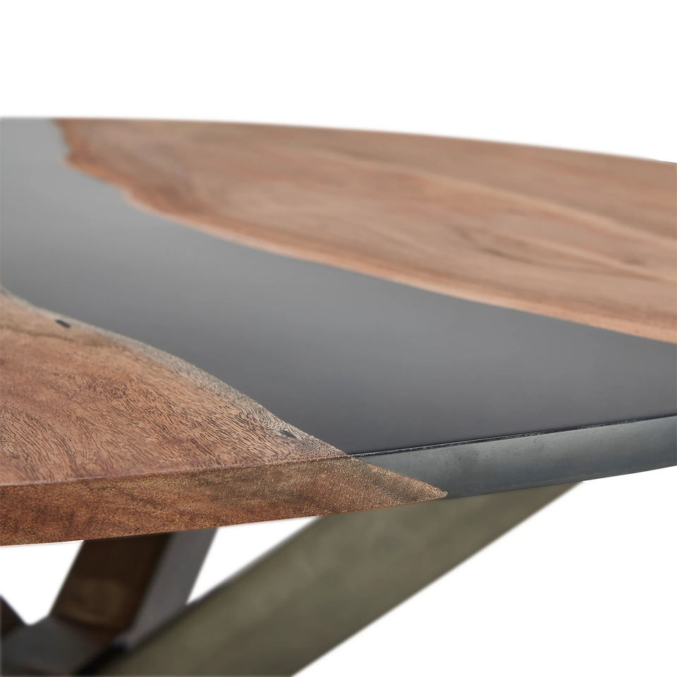 โต๊ะอาหารทรงกลมไม้กระถินณรงค์เนื้อแข็งเคลือบอีพ็อกซี่ ขาเหล็กพับได้รูปตัว X สไตล์อินดัสเทรียลโมเดิร์น เหมาะสำหรับบ้าน ห้องครัว ร้านอาหาร