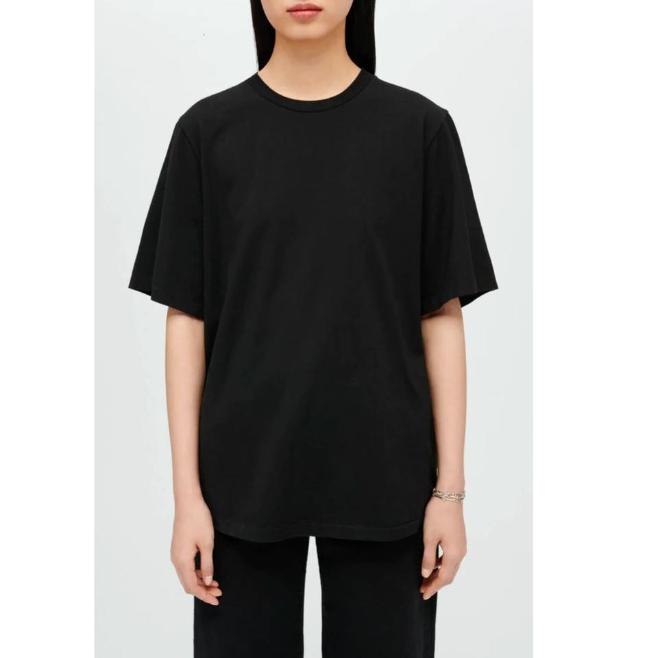 เสื้อยืดคอกลมแขนสั้นทรงหลวมสไตล์ร้อนแรงสำหรับฤดูร้อนใหม่สำหรับผู้หญิงเสื้อคอกลมแขนสั้นทันสมัยยาวปานกลางส่งออกจากผู้จำหน่าย BD