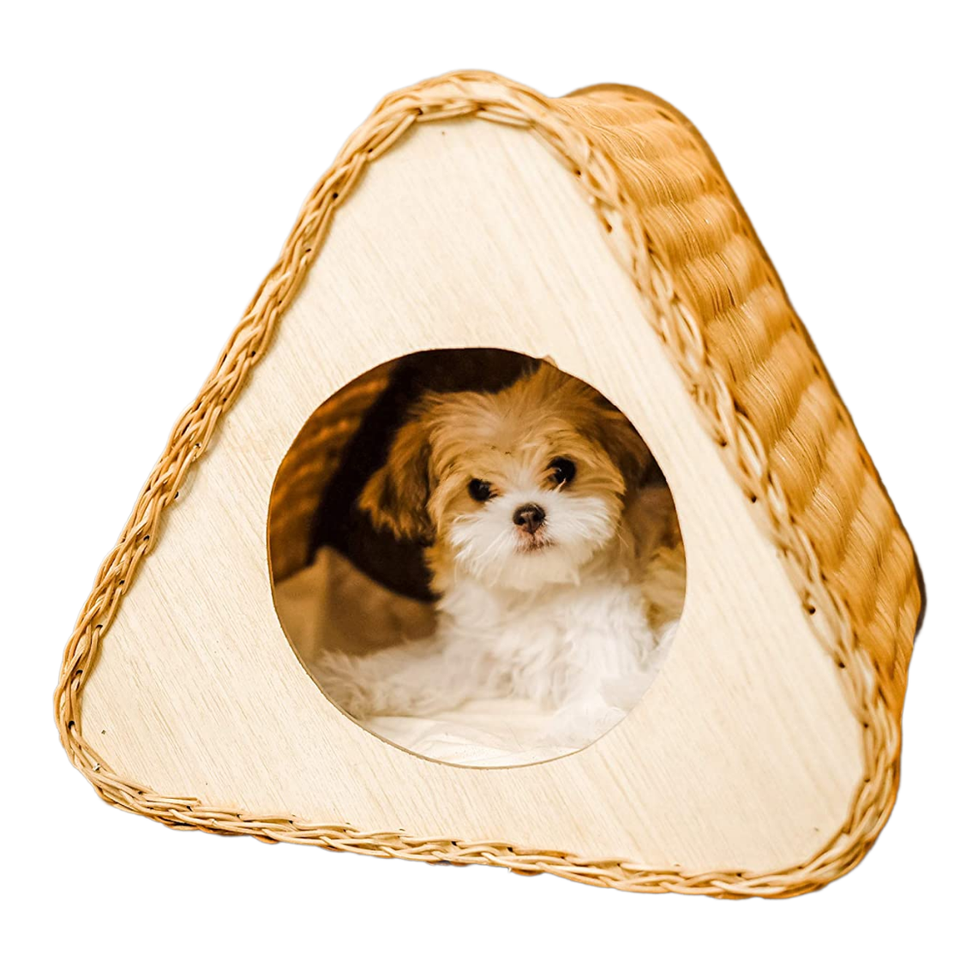 ที่นอนหวายสำหรับสัตว์เลี้ยงทำจากไม้หวายทรงสามเหลี่ยมสำหรับสุนัขและแมวขนาดเล็ก