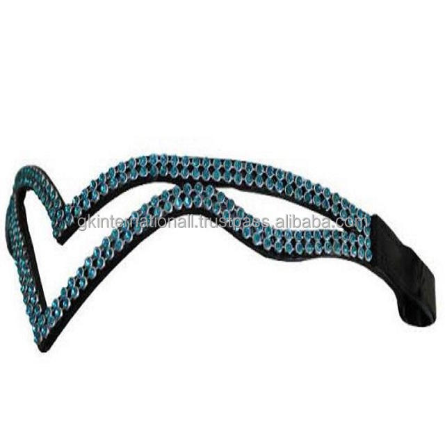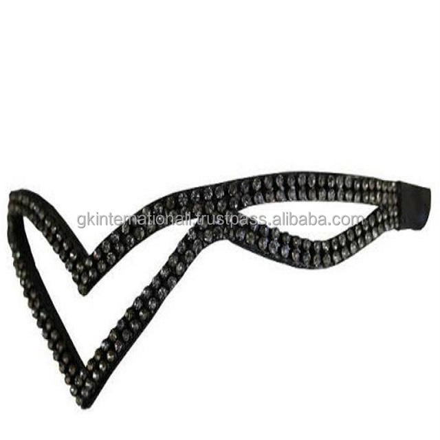 สายหนังคิ้วทันสมัยสำหรับม้าในรูปตัววีที่ไม่ซ้ำกันมีสองแถวคริสตัลสีดำ Bling และลูปที่กำหนดเอง
