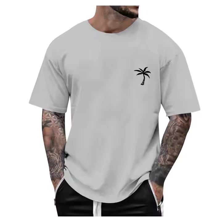 คอลเลกชันฤดูร้อนสุดฮอตเสื้อยืดโชว์ไหล่สำหรับผู้ชายดีไซน์ใหม่พร้อมแสงแดดฟอกสีขายส่งเสื้อยืดผ้าคอตตอนลายว่างเปล่าใส่ได้พอดี!