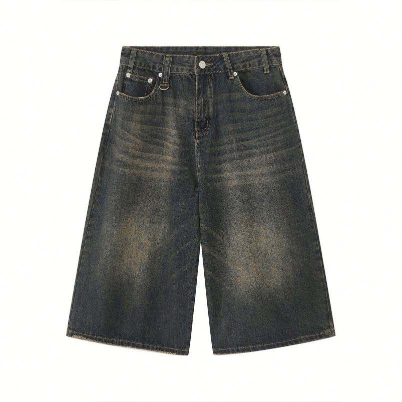 กางเกงยีนส์ทรงหลวมสำหรับผู้ชายกางเกงขาสั้นผ้ายีนส์สีเข้มสีเข้มสำหรับฤดูร้อน