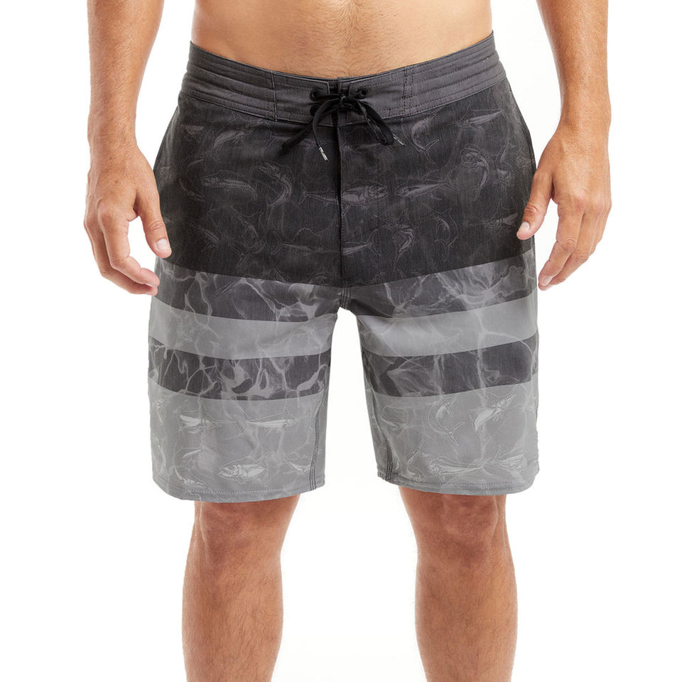 กางเกงขาสั้นพิมพ์ลายตกปลาของผู้ชายสำหรับฤดูร้อนกางเกงเอวยางยืดลำลองแห้งเร็ว100% โพลีเอสเตอร์ UPF 50ระบายอากาศได้ดี
