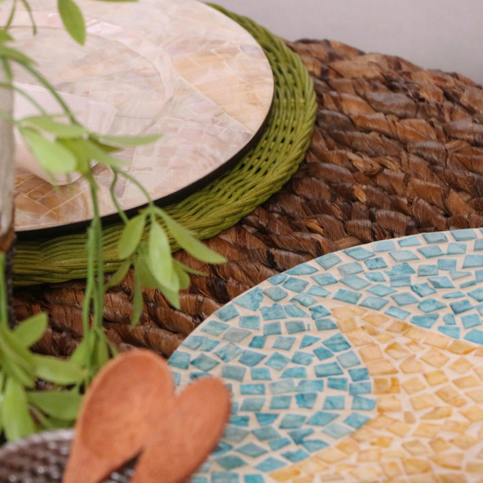 ชื่อผลิตภัณฑ์:เสื่อรองแก้วหอยมุกบรรยากาศฤดูร้อน