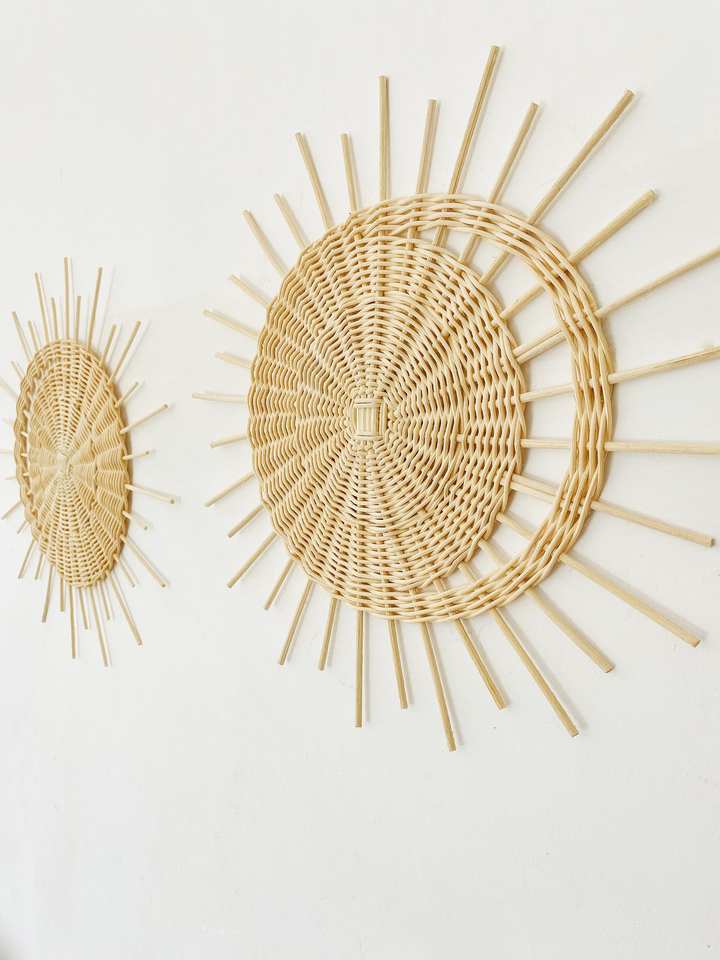 ตะกร้าแขวนติดผนังลายพระอาทิตย์สีรุ้งยอดนิยมตะกร้าแขวนผนังตะกร้าหวายงานฝีมือแบบพระราชาแห่งชนบทผู้จำหน่ายในเวียดนามสำหรับตกแต่งเตียงฤดูใบไม้ผลิ