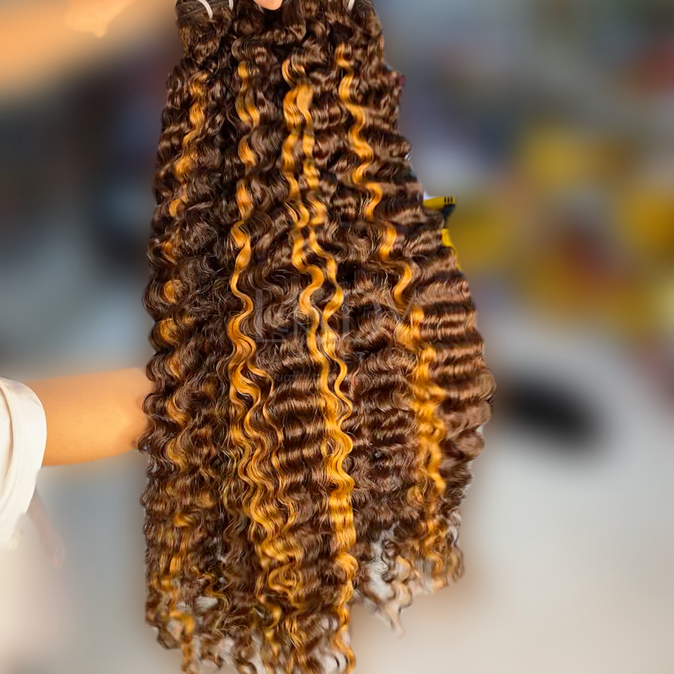 ผมต่อแบบเวียดนามสีอ่อนหยิกแบบชาวพม่าเนื้อสัมผัส