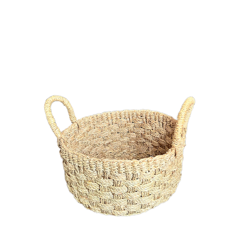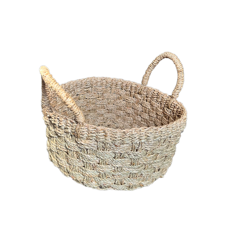 ตะกร้าหวายจากหญ้าทะเลธรรมชาติทำจาก100% งานแฮนด์เมดยุโรปน้ำผักตบชวาสานไม้ไผ่สานทรงรีขนาดออกแบบได้ตามต้องการ