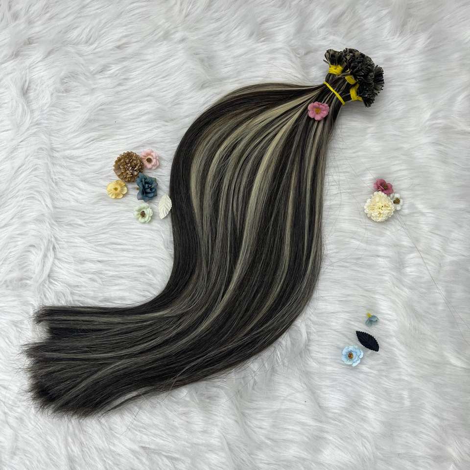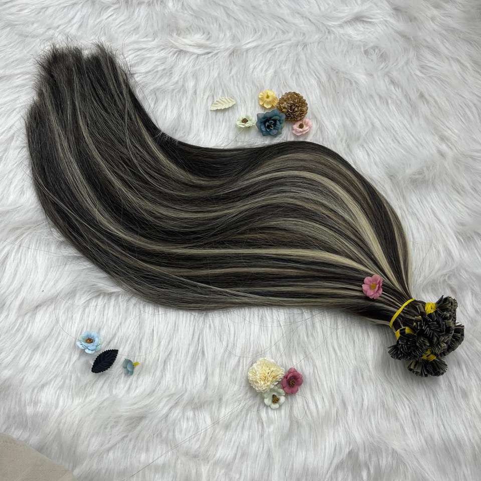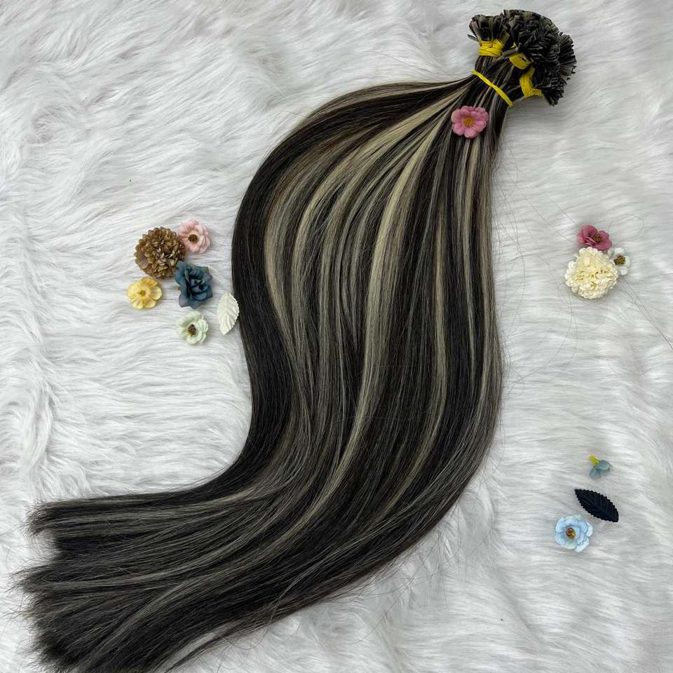 100% ต่อผมดิบที่มีคุณภาพสูงสำหรับต่อผมตรงปลายแบน4/60ถักเปียโครงสร้างที่แข็งแรง