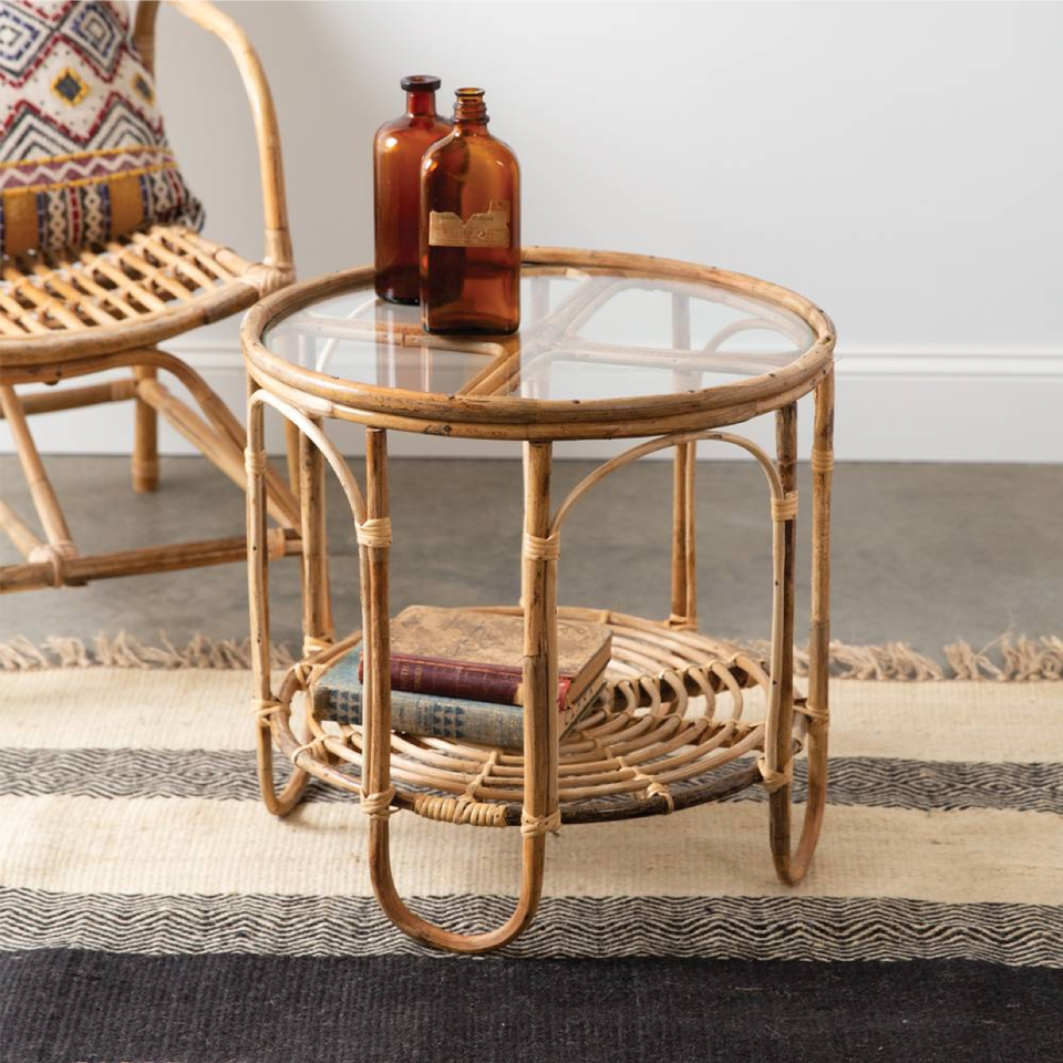 Rattan and Glass Side Table