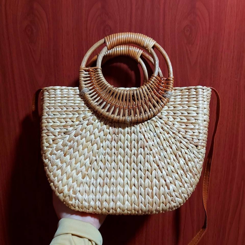 กระเป๋าผักตบชวาธรรมชาติทำด้วยมือ2025กระเป๋าผ้าใยสังเคราะห์ที่เหมาะสำหรับการเดินทางและชายหาด