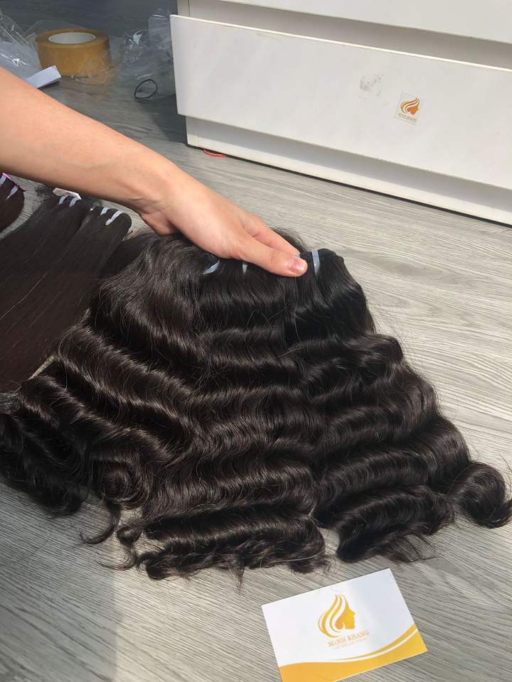 ผมต่อเวอร์จินแบบเวียดนาม ลอนยาวทั้งเส้น ติดด้วยมือและเครื่อง แบบดับเบิ้ลเวฟท์ ฟอกสีแล้ว ราคาขายส่งและปลีกมีจำหน่าย