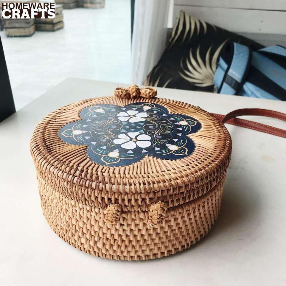 กระดุม, พู่, กระเป๋าหวายสานงานฝีมือราคาถูกกระเป๋าสะพายไหล่หวายบาหลีเทรนด์ร้อนจากเวียดนามเครื่องประดับ